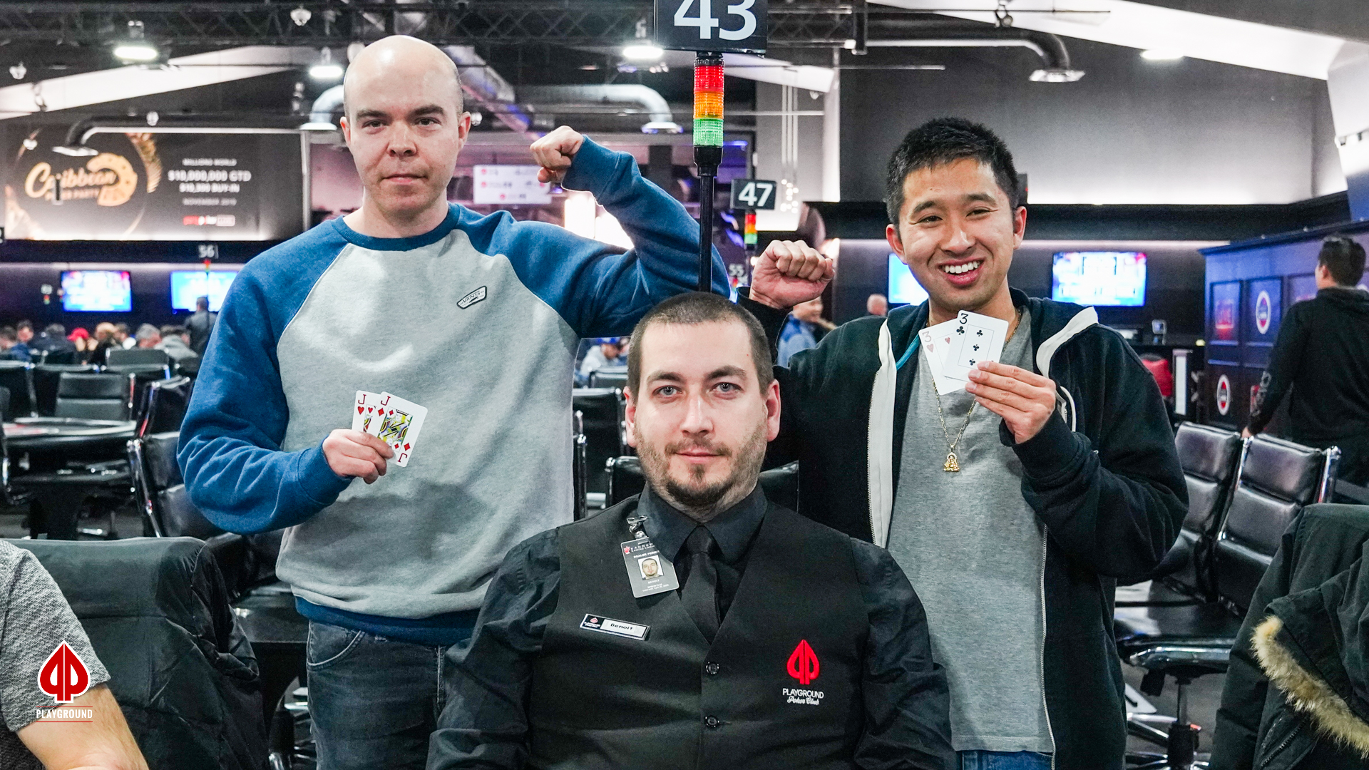 The huge pot had the players at the table captivated, each wondering “could this be it?” Albert and Gabriel tabled their hands triumphantly, each figuring that they had the best hand in this spot. As it would turn out, everyone was a winner in this situation. Albert showed