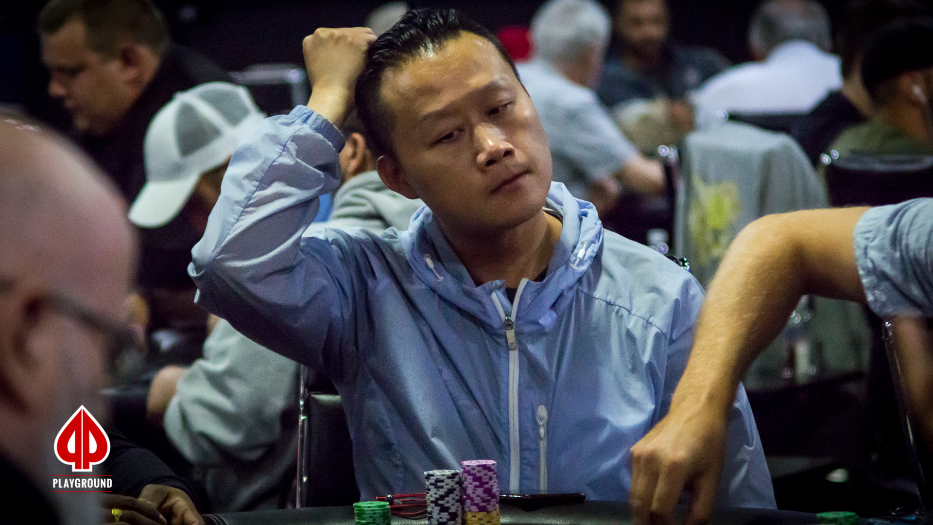 The action started at 7:00pm in the $100 + $10 Playground 100 Day 1A and by the time late registration came to a close, 161 players had jumped in (including 24 re-entries). Action started right out of the gate and three or four players seemed to always be at the top of the leader board as the night moved along. Play was scheduled to last until the field shrunk down to 10% of the total entries, meaning it would come to an end once there were only 17 players remaining with chips to bag. All players who bagged are now in the money and are guaranteed a min-cash, but of course everyone is looking for a final table finish and hoping to be crowned champion and take home the top prize.