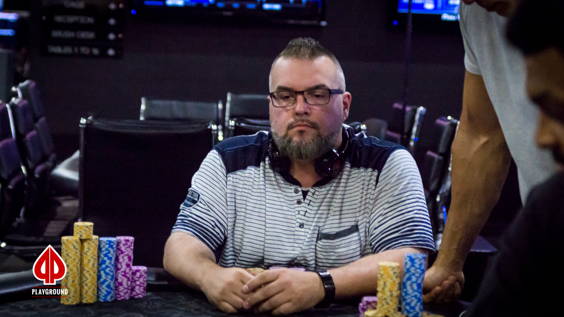 As play was down to 19 players, all of the short stacks were looking at the other two other tables, hoping to see even smaller stacks than their own, so that they would be able to maybe squeak into the money should another two players bustout. Marc-Andre St-Pierre was the first casualty after being taken out by Benoit Desbiens. Once the field was reduced to 18 players, the remaining players on the third table merged with the other two tables and with the final 18 players now on the bubble, play went hand for hand.