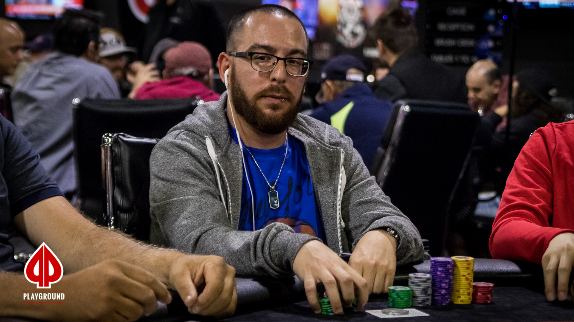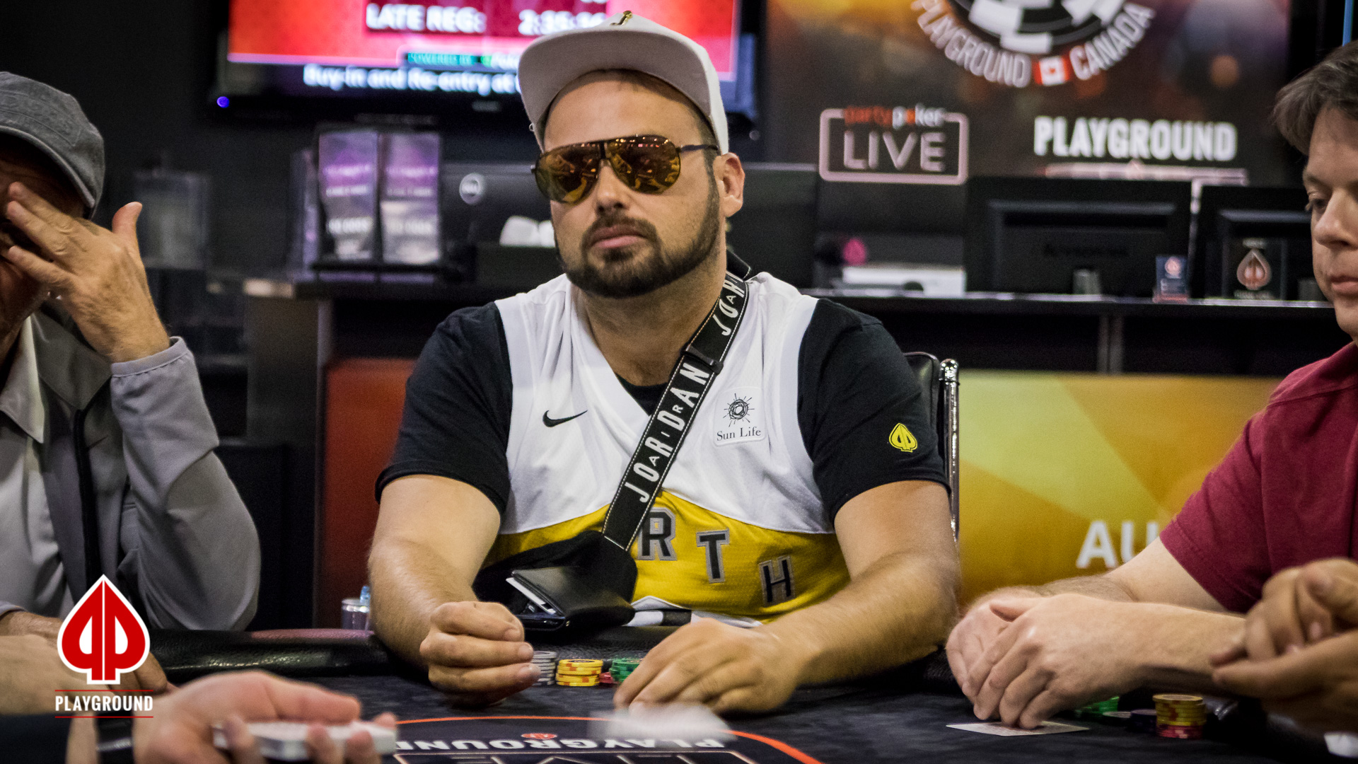 Harley Stoffmaker got off to an early lead before handing over the pole position to Sébastien “Seabass” Poitras who had managed to build his stack up to three times the average mid-point into the flight. But Seabass had a menacing foe right behind him: Alex Bédard-Poudrier. Only 12,000 chips separated the two players at this point. As soon as the action resumed after 8 levels, Alex gave pretty much every player at his table a good run for their money, winning virtually every all-in he got involved in. This positive streak catapulted him into the first slot of the leaderboard by the time the 12th level started.