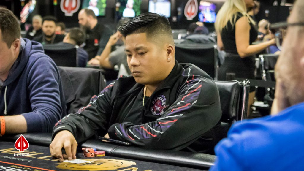 Hefty amounts of chips were put into play early and often this afternoon. In many starting flights, the players often take a measured approach to the early levels, but that was not the case today. Three-bets quickly became the norm and there were plenty of big pots up for grabs. Azim Popatia, better known as “Sammy” by Playground regulars, took full advantage of the early action and jumped out to a huge chip lead, one that he was able to maintain until after the second break of the day. But several players were able to capitalize on the late stages to surpass Popatia’s once-dominant chip lead.