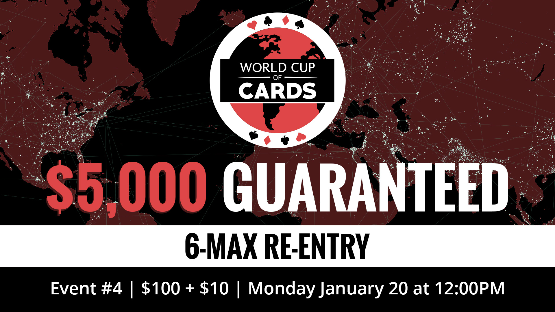 • Event #5: $100 + $20 + $100 6-Max 50/50 Bounty Re-entry