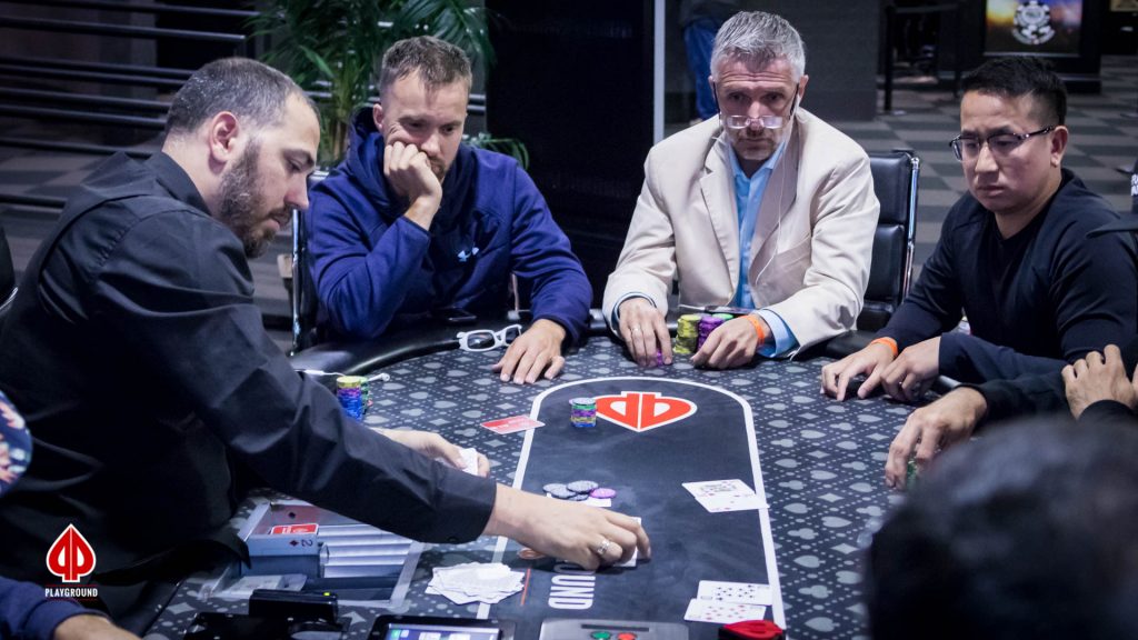 Day 1C of the WSOP-C Playground Main Event brought out a huge field of players that made a total of 777 entries in this flight. Before play concluded, 164 players fired a second bullet at Day 1C, which helped put nearly 39 million in chips in play. There were nearly 300 players ready and waiting for the start of play this afternoon, and they were joined by a steady stream of new players and re-entries that continued all the way to the final level of play. One popular option was to take a shortcut through the satellite route by taking shots at the series of $110 flips that put many players into the Main Event this afternoon.